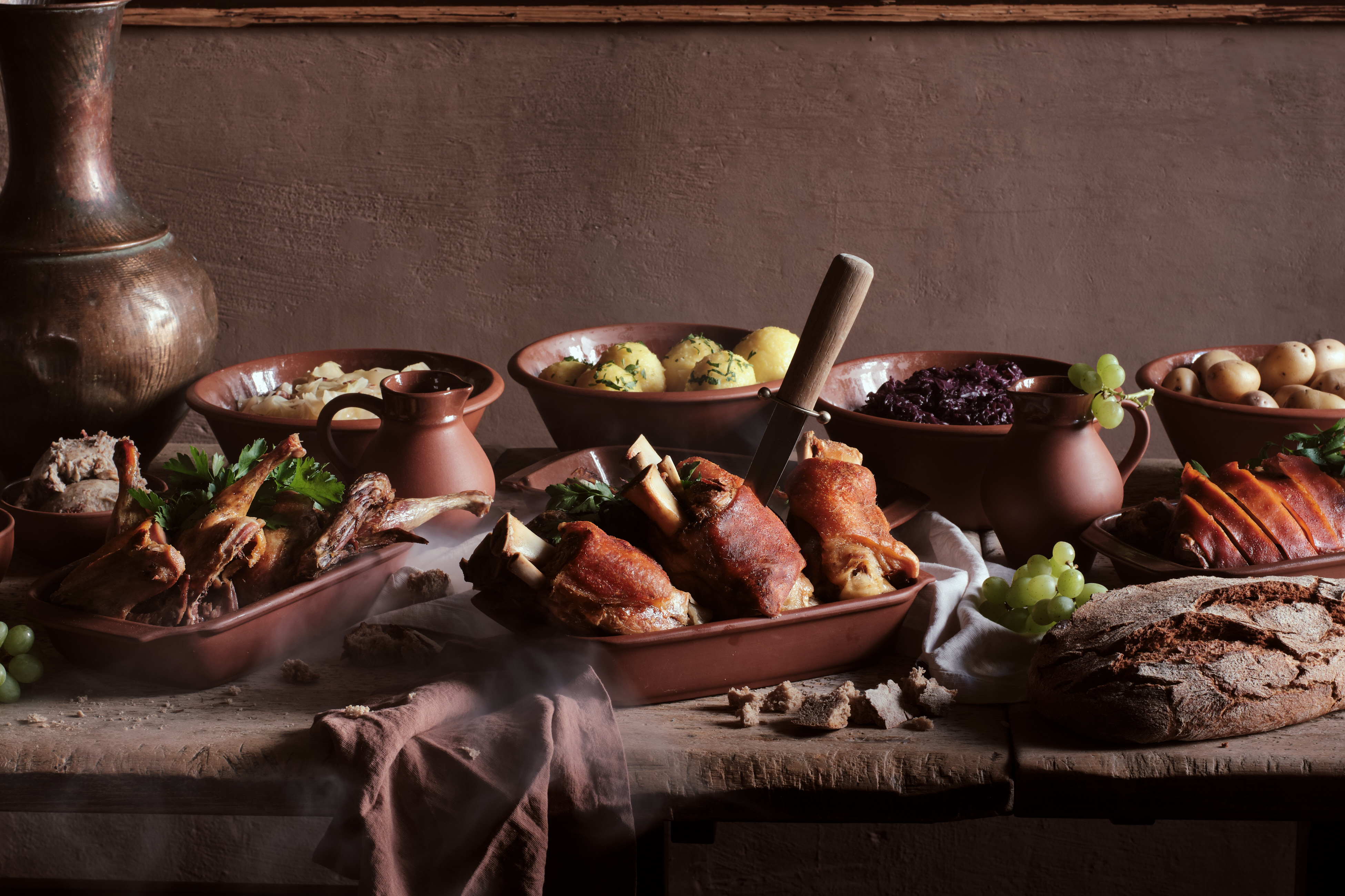 An evening in Tafelrunde is more than the usual eating out as we know it today. It is an experience, authentic, strong and hefty as in the Middle Ages. You enjoy good and lots of food with six dishes for approximately three hours. Of course you will eat with your fingers and a dagger as in ancient times. An accompanying programme will round off the evening.