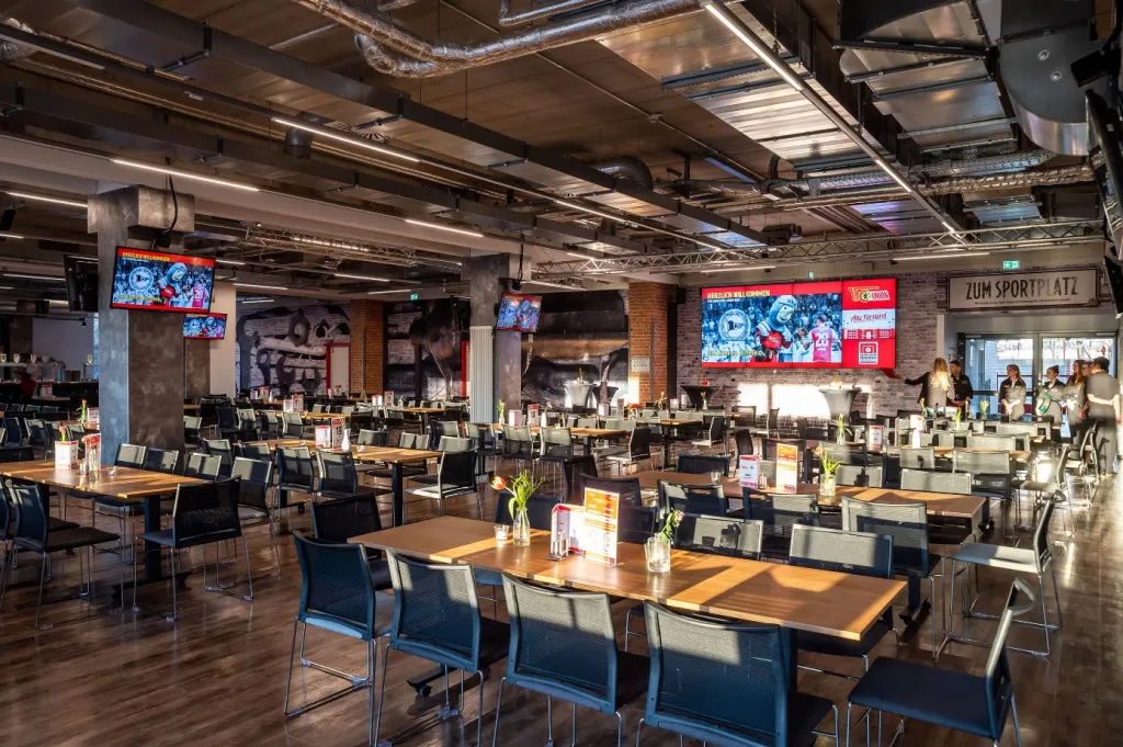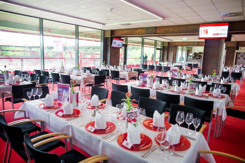 | Eisern Lounge Wald und Eisern Lounge Wuhle | 360° tour - | Room area 395 m² | Room height 2.80 m | Max. banquet seating 200 | Max. parliament seating 120 | Max. reception seating 250 | Max. row seating 190 | Max. standing seating 0 | Max. U-shape seating 0 |