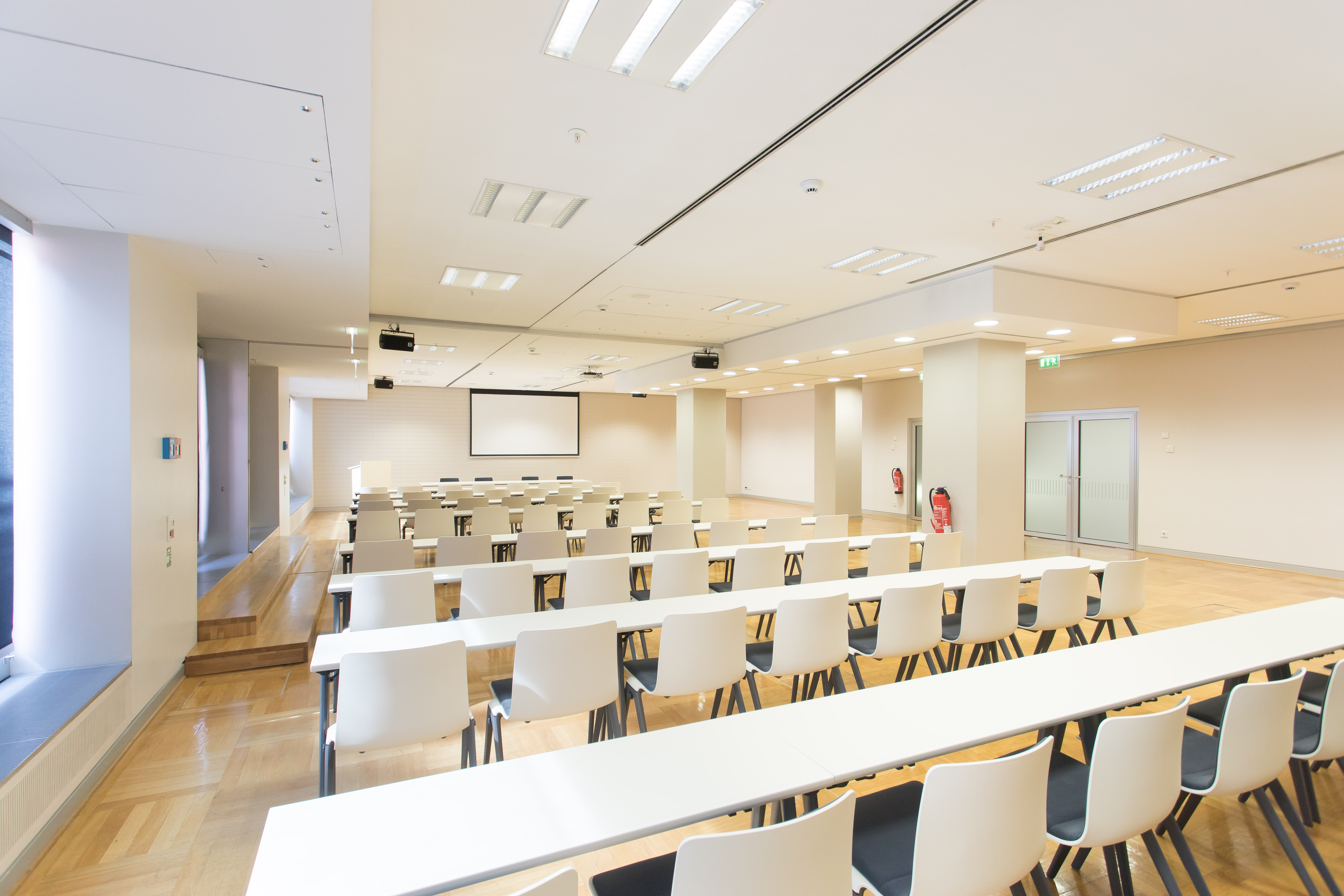 | Ebene A (bis zu 7 Räume) | Level A (up to 7 rooms) | 360° tour - | Room area 1497 m² | Room height 2.80 m | Max. banquet seating 0 | Max. parliament seating 324 | Max. reception seating 1500 | Max. row seating 556 | Max. standing seating 0 | Max. U-shape seating 0 |