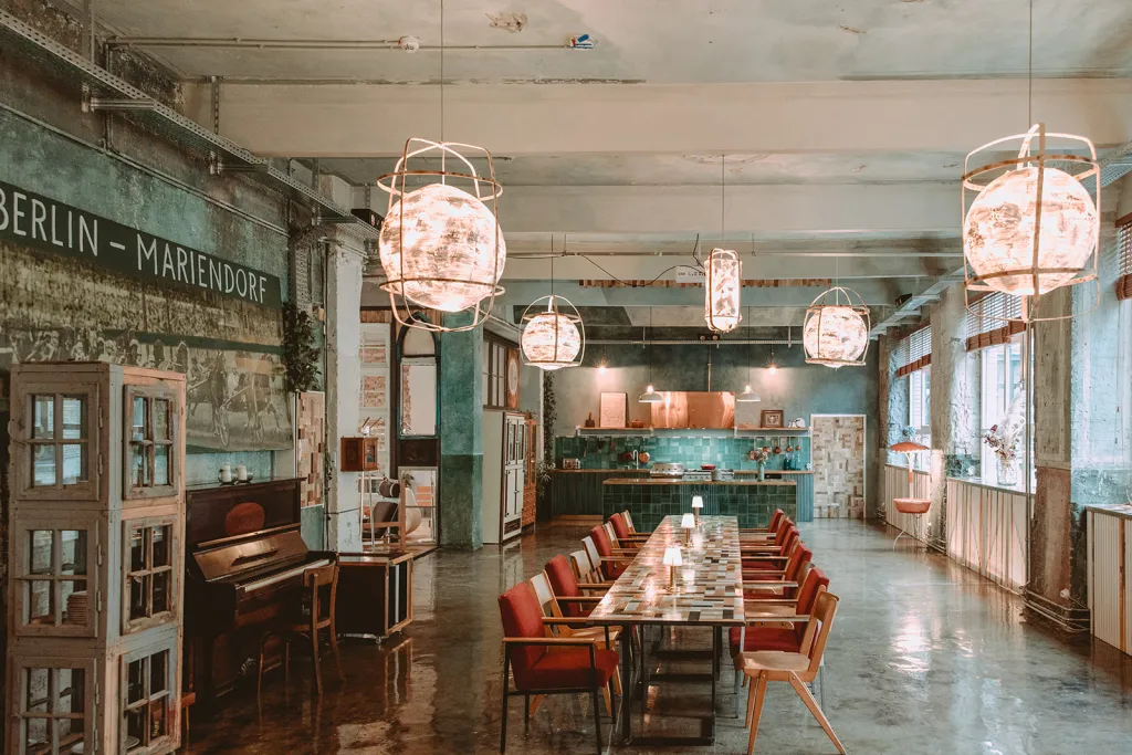 | Die Kantine | 360° tour - | Room area 114 m² | Room height 3.8 m | Max. banquet seating 0 | Max. parliament seating 0 | Max. reception seating 60 | Max. row seating 0 | Max. standing seating 0 | Max. U-shape seating 0 |
