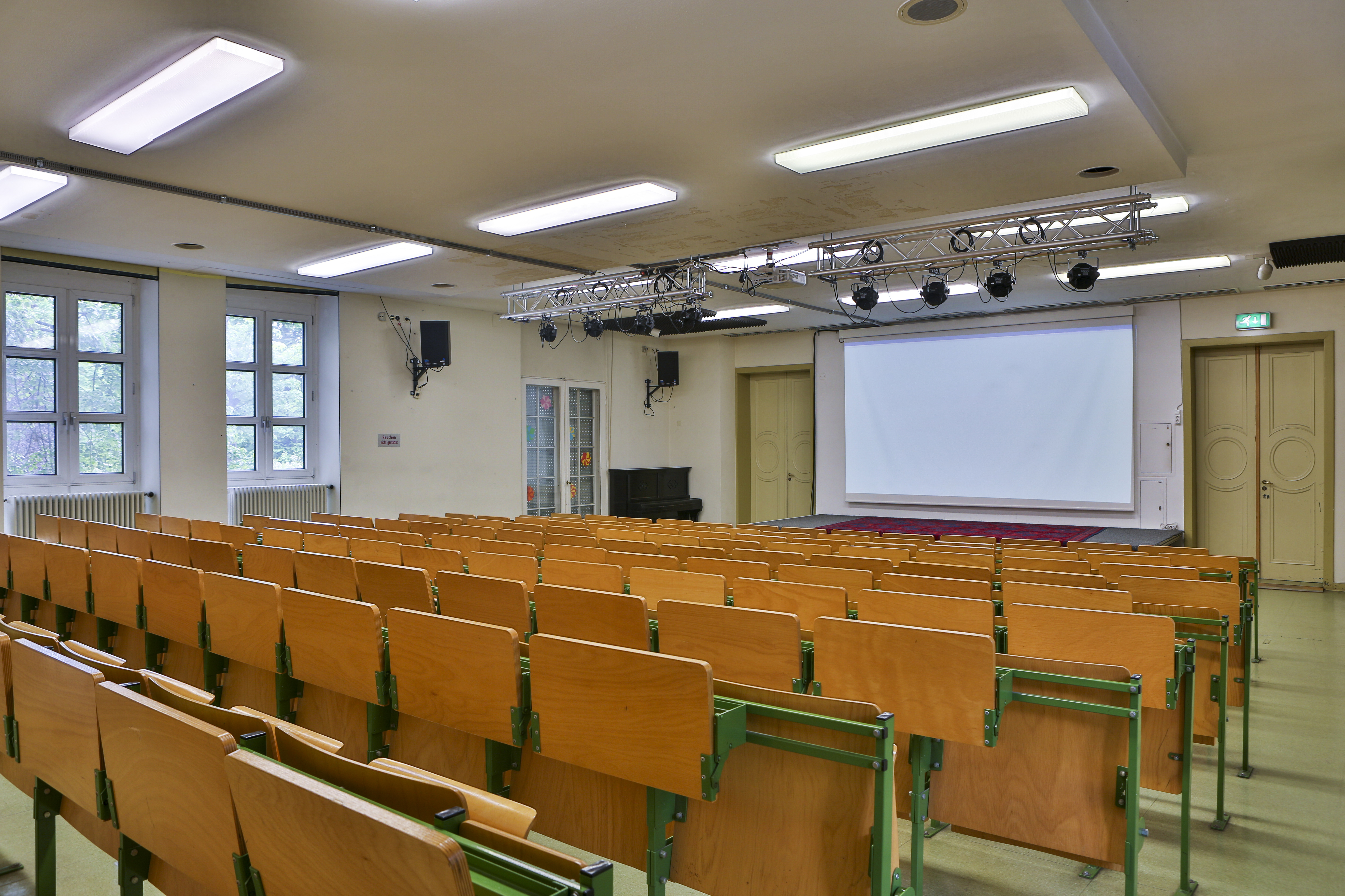| Hörsaal | Room area 120 m² | Room height 5.00 m | Max. banquet seating 0 | Max. parliament seating 140 | Max. reception seating 0 | Max. row seating 140 | Max. standing seating 0 | Max. U-shape seating 0 |