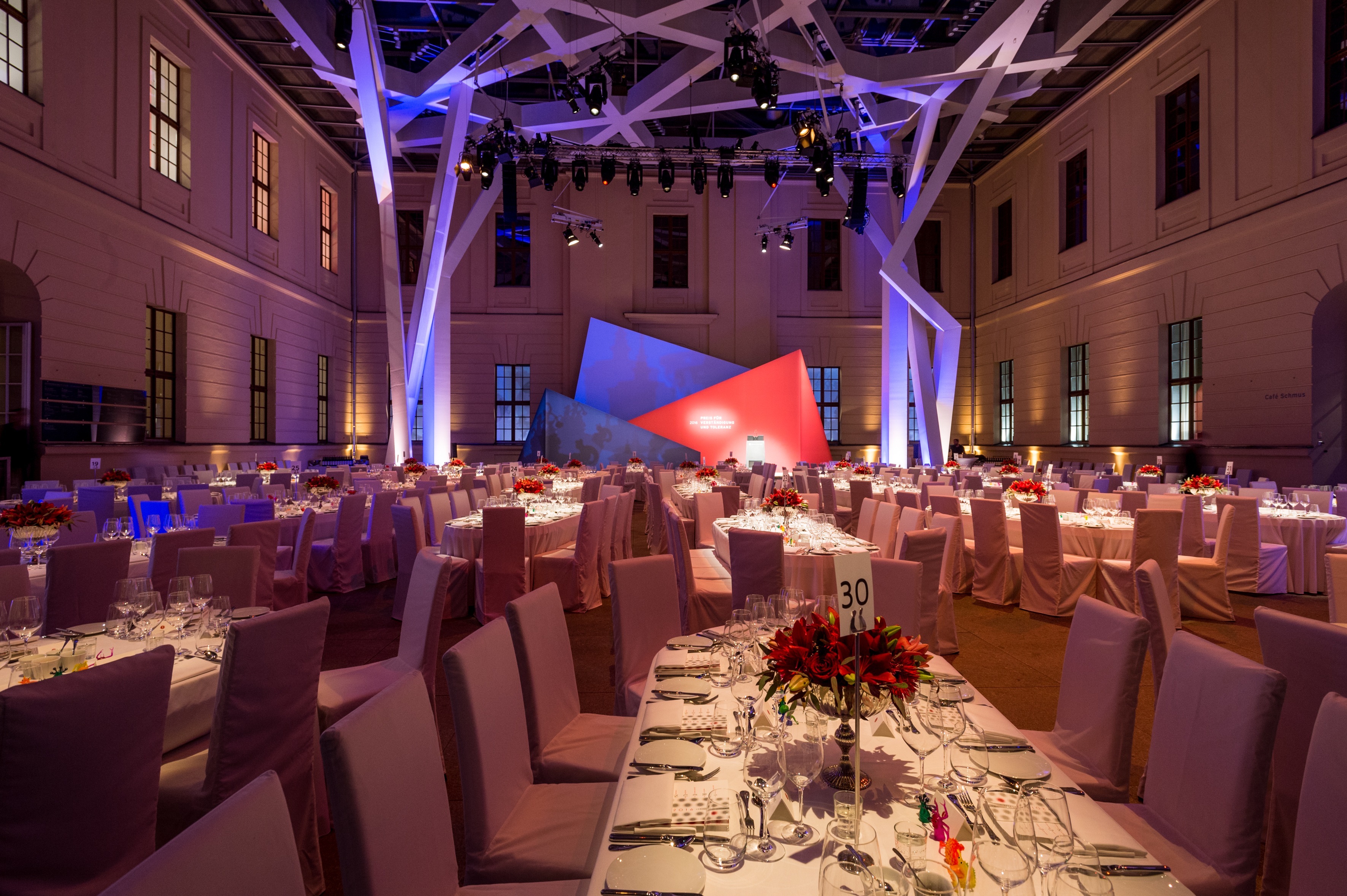 | Glashof | 360° tour - | Room area 650 m² | Room height 11.70 m | Max. banquet seating 300 | Max. parliament seating 280 | Max. reception seating 400 | Max. row seating 400 | Max. standing seating 0 | Max. U-shape seating 0 |