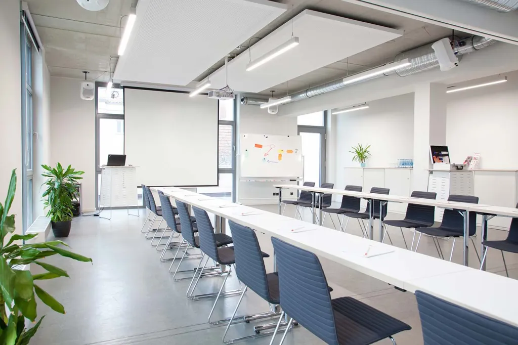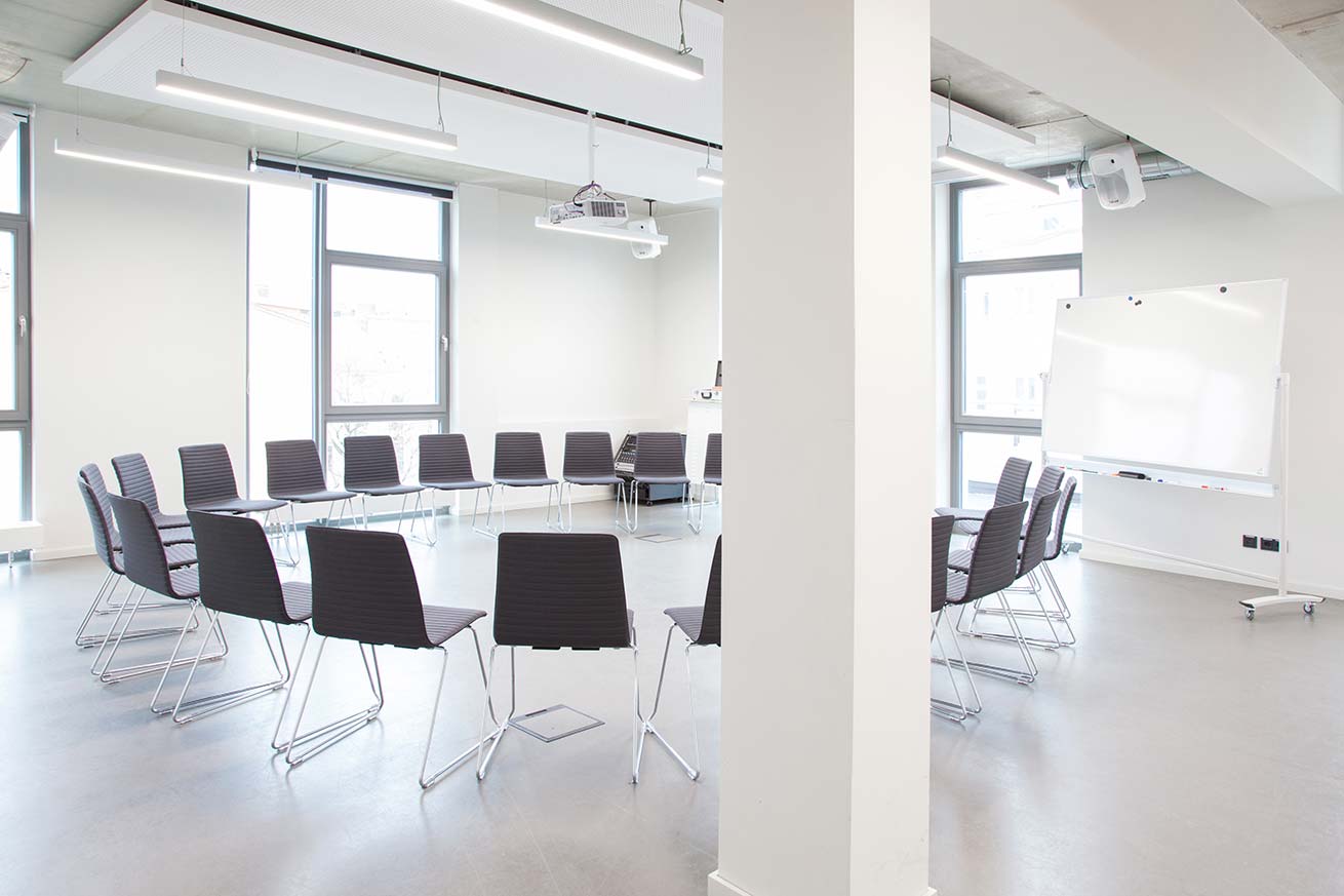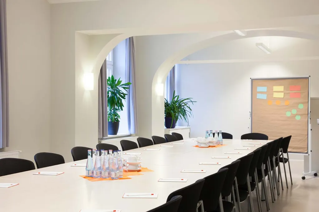 | Schwarz-Weißer Pfeffer | 360° tour - | Room area 96 m² | Room height 2.50 m | Max. banquet seating 40 | Max. parliament seating 36 | Max. reception seating 70 | Max. row seating 70 | Max. standing seating 0 | Max. U-shape seating 40 |
