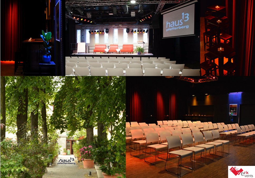 | Pfefferberg Haus 13 | 360° tour - | Room area 160 m² | Room height 4.00 m | Max. banquet seating 45 | Max. parliament seating 60 | Max. reception seating 170 | Max. row seating 150 | Max. standing seating 0 | Max. U-shape seating 0 |