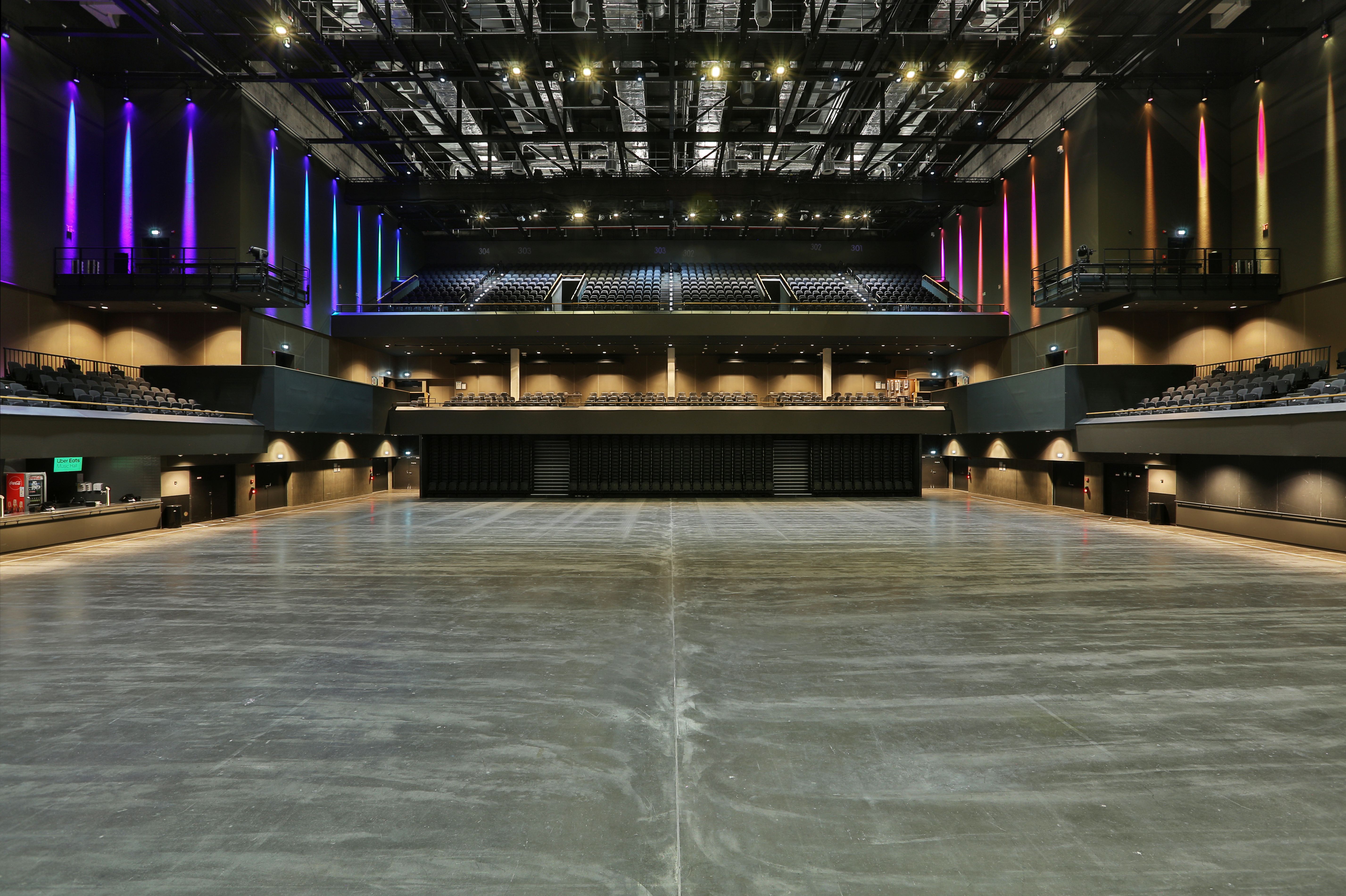 | Halle | 360° tour - | Room area 1500 m² | Room height 16.80 m | Max. banquet seating 900 | Max. parliament seating 980 | Max. reception seating 2000 | Max. row seating 2414 | Max. standing seating 4378 | Max. U-shape seating 0 |