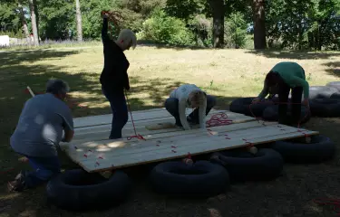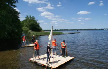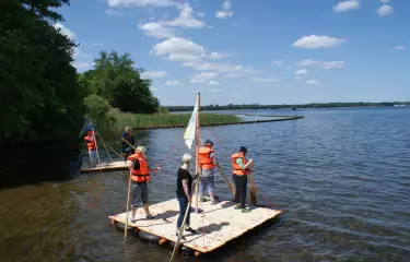 Don't let yourself be misled and convince with teamwork, communication, improvisation and creativity when it comes to putting a self-built raft through its paces together with your team colleagues.