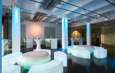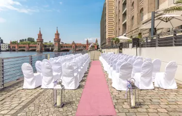 Immediately adjacent to the conference rooms is the Spree terrace with great views to the historic Oberbaumbrücke. Your guests are sure to be impressed whichever way they turn! If the weather is good food and drinks can be served on the terrace. You guests can relax on our comfortable, designer outdoor furniture.