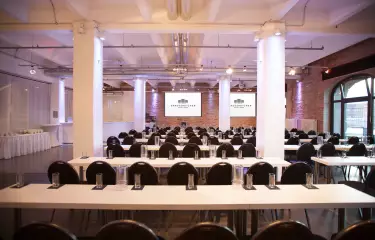The 2C SpreeQuartier is a modern and convenient meeting place located on Berlin‘s Eastern Harbour Front amidst the city’s creative media district. You can find here first class meeting rooms for conferences and seminars for up to 120 people seated in rows.