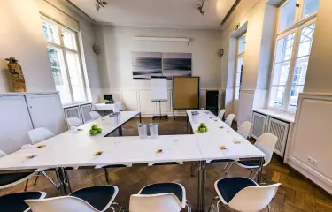 A beautiful location and a quiet working atmosphere make the conference rooms at Blumenfisch am Großen Wannsee very popular. The two conference rooms are frequently booked for conferences, workshops and seminars. The conference room Zauberberg with lake view offers space for up to 40 people in row seating. The conference room garden room is suitable for 20 persons in row seating.