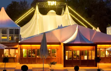 Das TIPI AM KANZLERAMT, mitten im Regierungsviertel, zählt zu einem der außergewöhnlichsten Veranstaltungsorte Berlins. Ob Cabaret, Varieté, Tanz, waghalsige Artistik, Musical- Comedy oder Magie – hier werden Auge, Ohr und Gaumen gleichermaßen verzaubert, denn für das leibliche Wohl sorgt die hauseigene anspruchsvolle Küche. Seien Sie unser Gast oder werden Sie im TIPI AM KANZLERAMT selbst zum Gastgeber. Das festliche Zelt steht für Exklusivveranstaltungen zur Verfügung und ist durch seine variable Raumaufteilung für große und kleinere Gesellschaften gleichermaßen attraktiv.