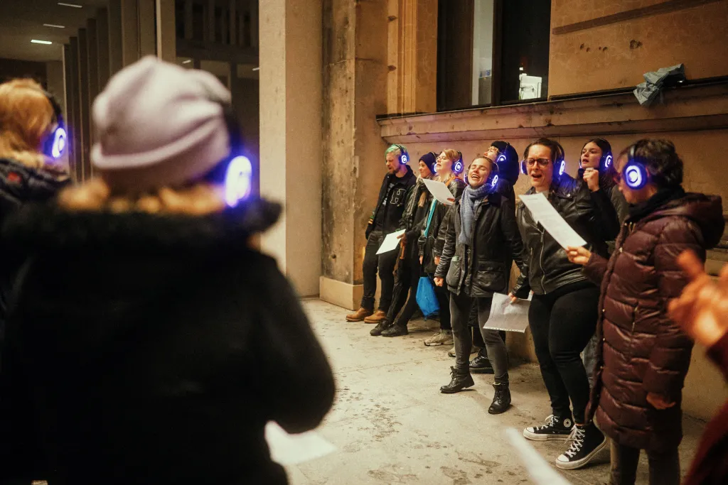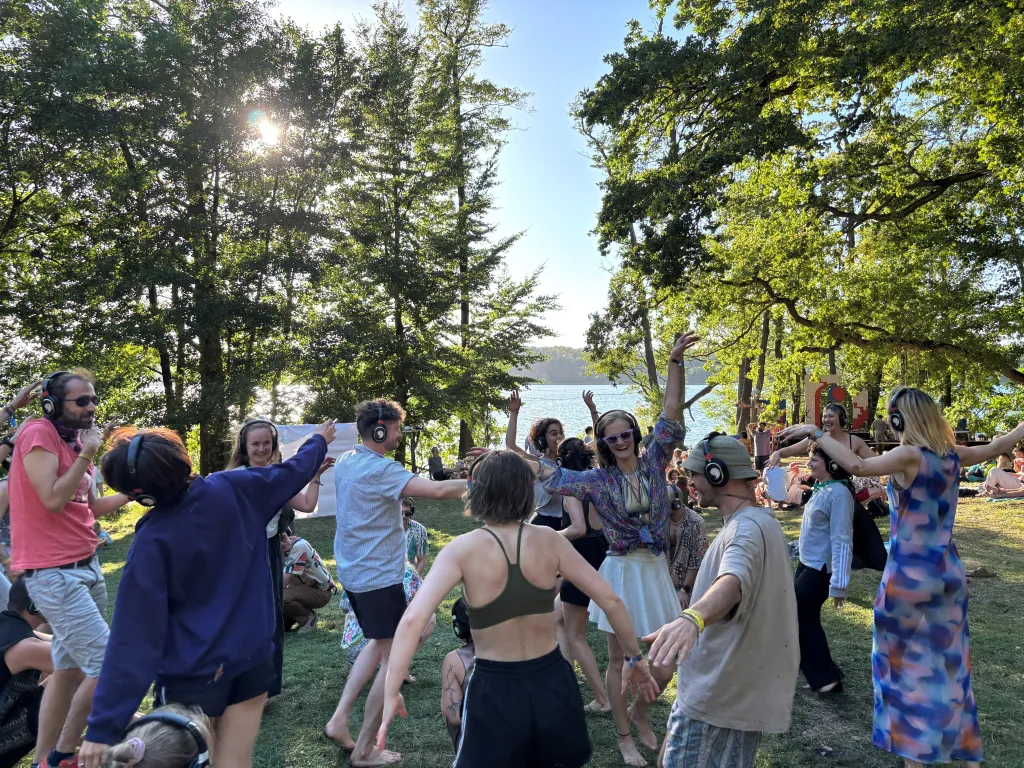 Unsere Silent-Event-Technologie vermeidet externe Lärmemissionen und ermöglicht Veranstaltungen in sensiblen urbanen Räumen sowie in Parks und Naturschutzgebieten ohne zusätzliche Beschallung.