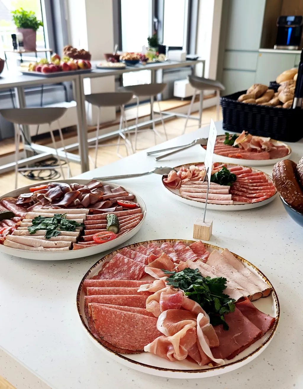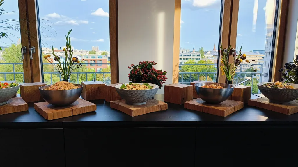 Darüber hinaus legen wir großen Wert auf die Vermeidung von Lebensmittelverschwendung durch bedarfsgerechte Planung und effiziente Abläufe. Verpackungsmaterialien wählen wir möglichst umweltfreundlich und achten auf wiederverwendbare oder recycelbare Lösungen. Auch in der Logistik optimieren wir kontinuierlich unsere Prozesse, um Emissionen zu reduzieren.
