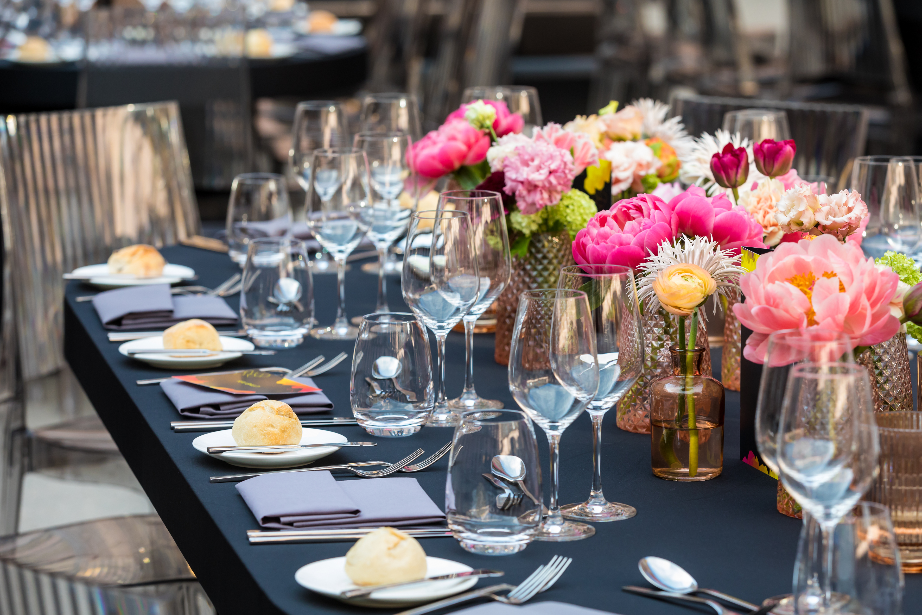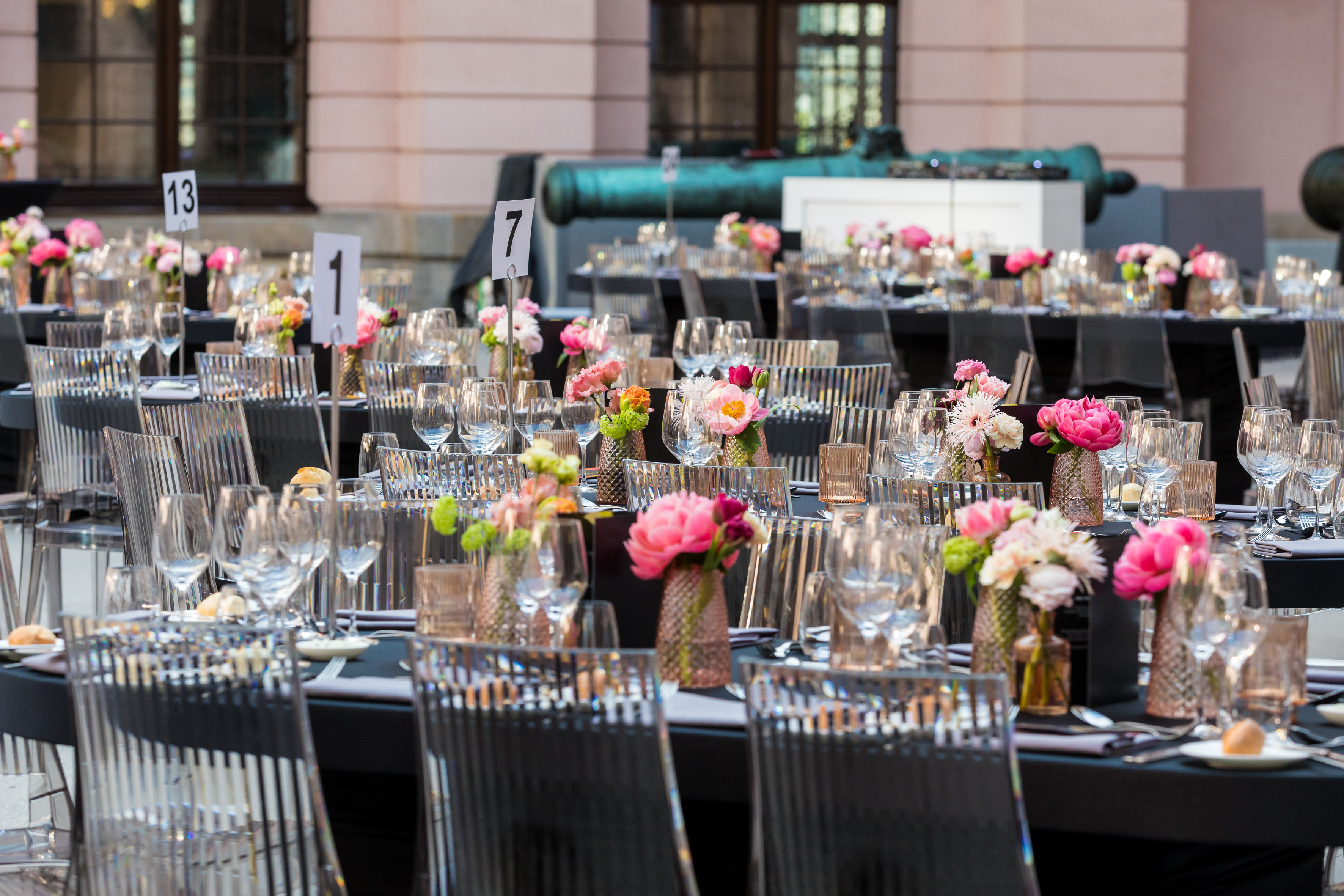 So wird jede Husse, Tischdecke und Serviette bei uns produziert, gewaschen, gebügelt. Unser Tischler*innen produzieren in Handarbeit jeden unserer Tische, Flatsofas, Stehtischbrücken bis hin zu dekorativen Messebauten. Dadurch können wir nicht nur auf lange Lieferwege verzichten, sondern zusätzlich Arbeitsplätze schaffen. Und viele unserer Mitarbeiter*innen arbeiten bereits seit mehr als 10 Jahren bei uns.