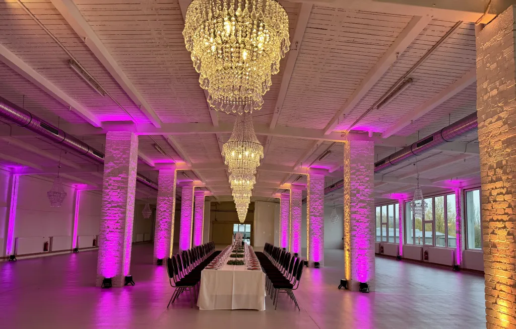 | Großer Saal | 360°-Tour - | Raumfläche 894 m² | Raumhöhe 4.50 m | Max. Bankettbestuhlung 350 | Max. parlamentarische Bestuhlung 300 | Max. Sitzplatzkapazität 600 | Max. Sitzplätze in Reihe 700 | Max. Stehplätze 0 | Max. U-förmige Sitzanordnung 0 |