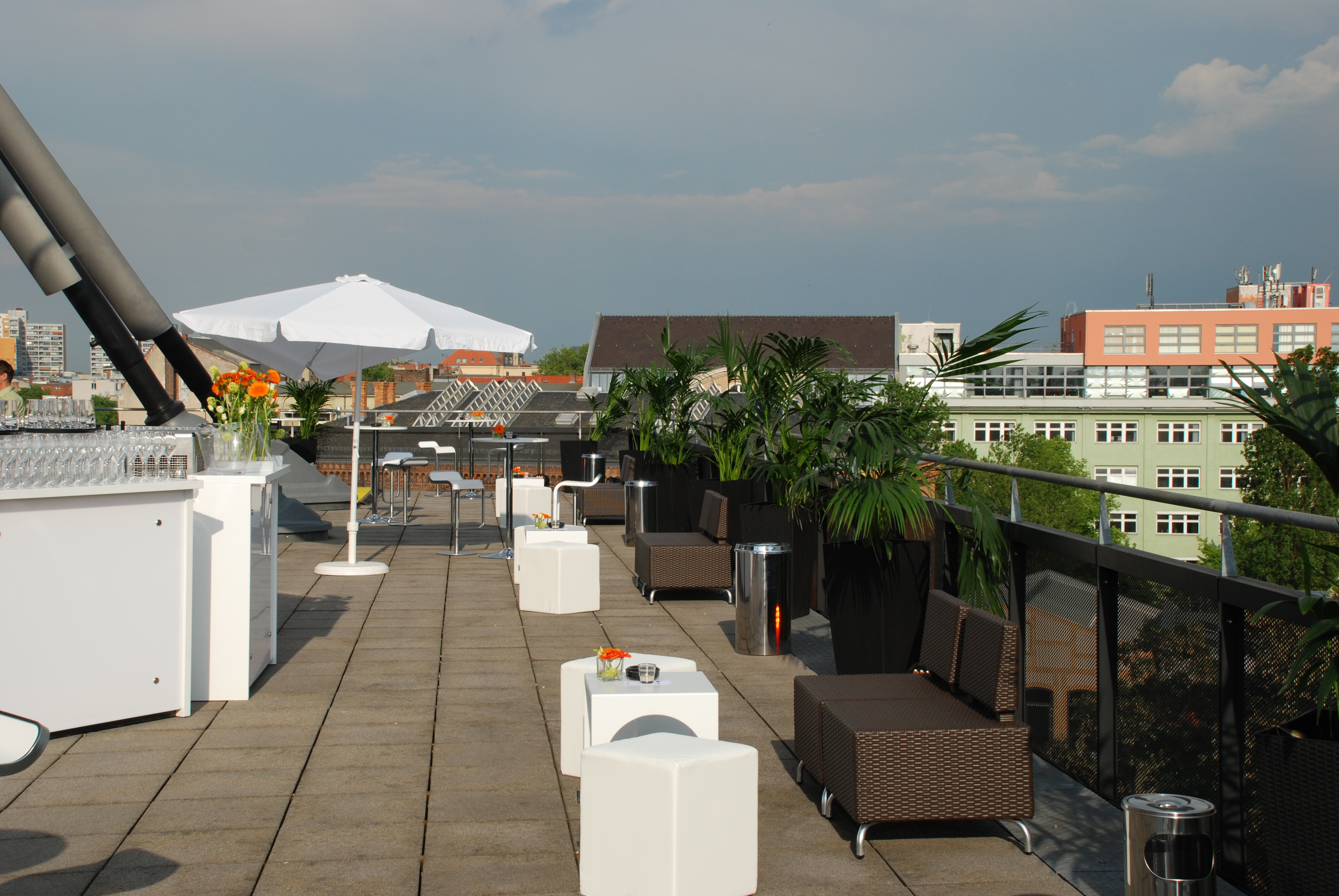 | "Ausguck" | 360°-Tour - | Raumfläche 830 m² | Raumhöhe 4.40 m | Max. Bankettbestuhlung 325 | Max. parlamentarische Bestuhlung 120 | Max. Sitzplatzkapazität 500 | Max. Sitzplätze in Reihe 223 | Max. Stehplätze 0 | Max. U-förmige Sitzanordnung 0 |