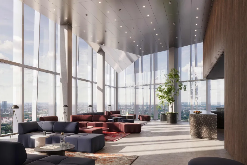 | Sky Foyer 42 | 360°-Tour - | Raumfläche 157 m² | Raumhöhe 3.30 m | Max. Bankettbestuhlung 0 | Max. parlamentarische Bestuhlung 0 | Max. Sitzplatzkapazität 90 | Max. Sitzplätze in Reihe 0 | Max. Stehplätze 90 | Max. U-förmige Sitzanordnung 0 |