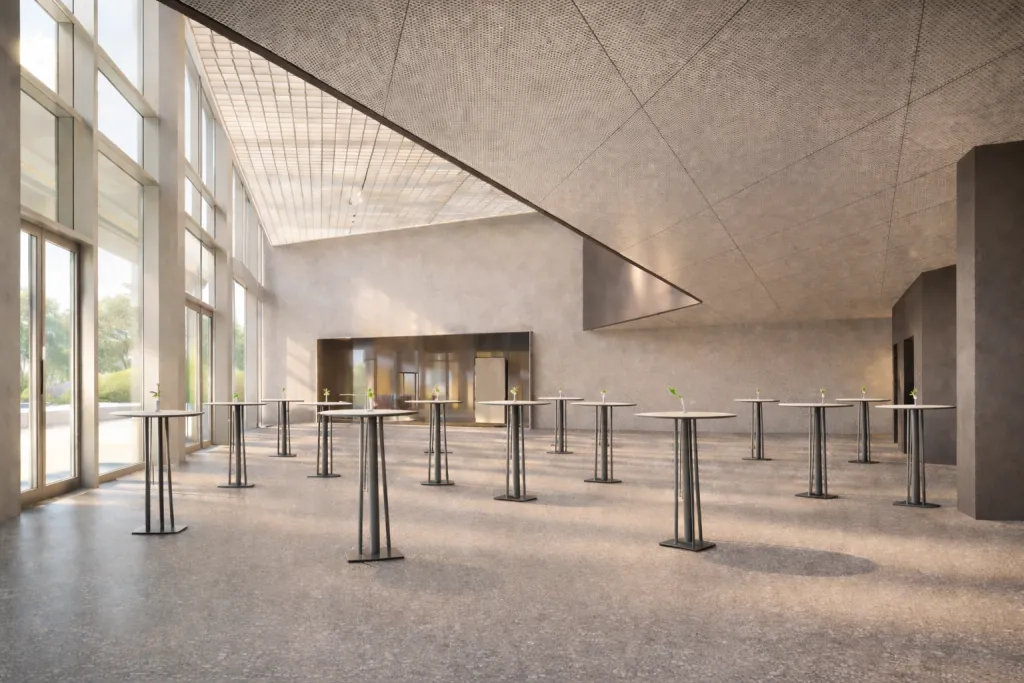 | Forum Foyer 1 | 360°-Tour - | Raumfläche 98 m² | Raumhöhe 3.3 m | Max. Bankettbestuhlung 0 | Max. parlamentarische Bestuhlung 0 | Max. Sitzplatzkapazität 125 | Max. Sitzplätze in Reihe 0 | Max. Stehplätze 125 | Max. U-förmige Sitzanordnung 0 |