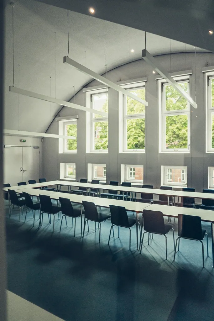 Der Festsaal eignet sich besonders für Tagungen, Kongresse, Workshops und Seminare ab 150 Gästen. Aber auch für Konzerte, Foto- und Filmaufnahmen oder Familienfeiern ab 120 Personen.