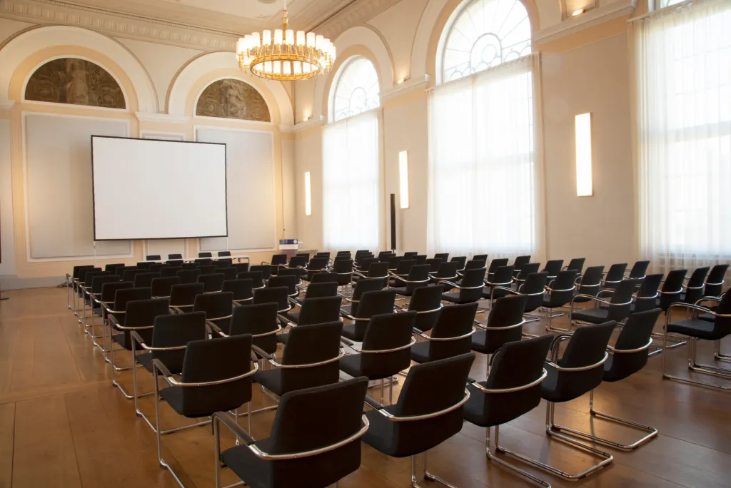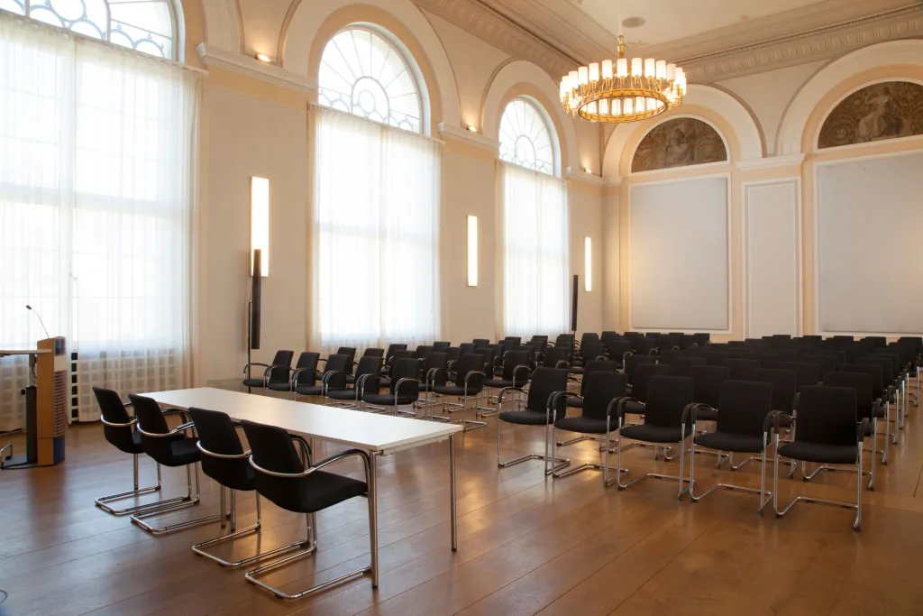 Die Ausstattung des Festsaals bietet mit Beamer und Leinwand, Rednerpult mit Mikrofon, Hand- sowie Ansteckmikrofonen wie auch einer Konferenzanlage zahlreiche Möglichkeiten bei Veranstaltungen.