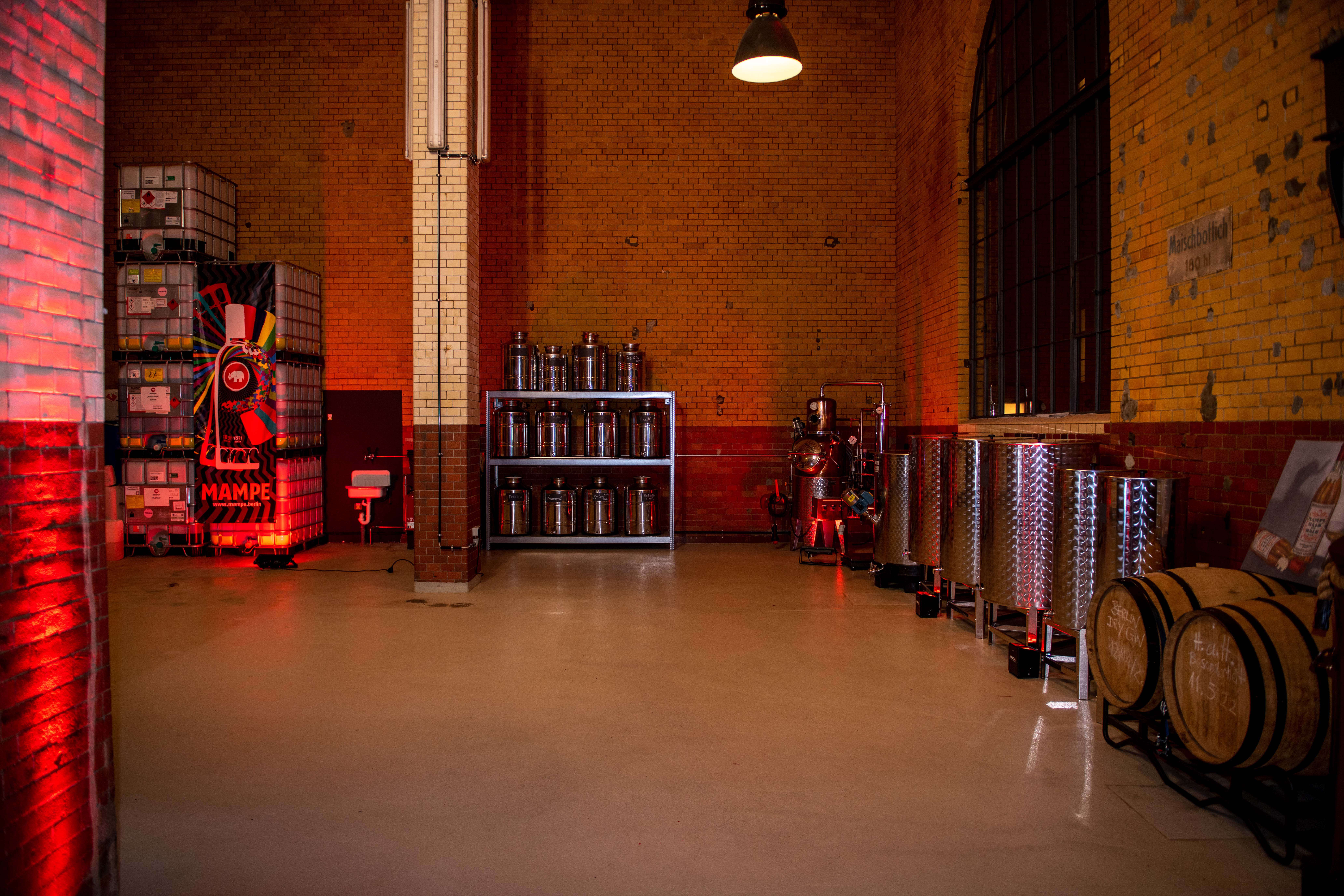 Wir sind eine Eventlocation in der Mampe Manufaktur, die vorzügliche Spirituosen herstellt. Direkt an der Bergmannstraße im Zentrum Berlins. Unser Anspruch ist die Kreation nachhaltiger Erlebnisse. Unsere Gäste nehmen großartige Erinnerungen mit nach Hause an einem Ort, der nicht nur zur Produktion genutzt wird.