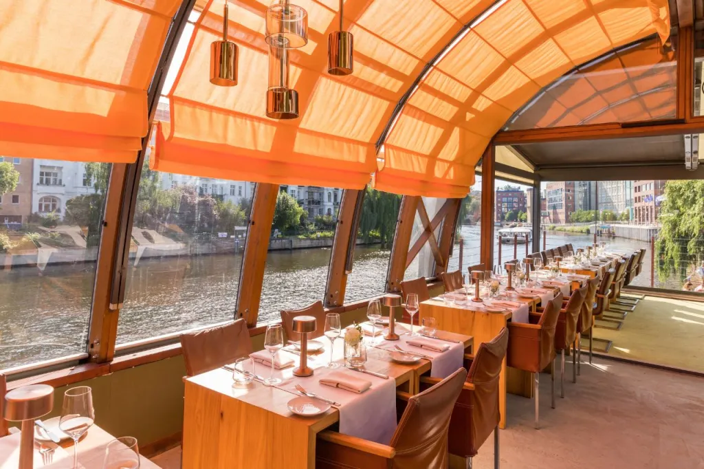 Das PATIO Berlin ist ein stilvoll umgebautes Restaurantschiff in zentraler Lage auf der Spree – nur wenige Minuten vom Hauptbahnhof entfernt. Mit drei unterschiedlich gestalteten Decks bietet es eine exklusive Eventfläche für bis zu 150 Personen – flexibel nutzbar für Firmenveranstaltungen, Sommerfeste, Kunden-Events oder private Anlässe.