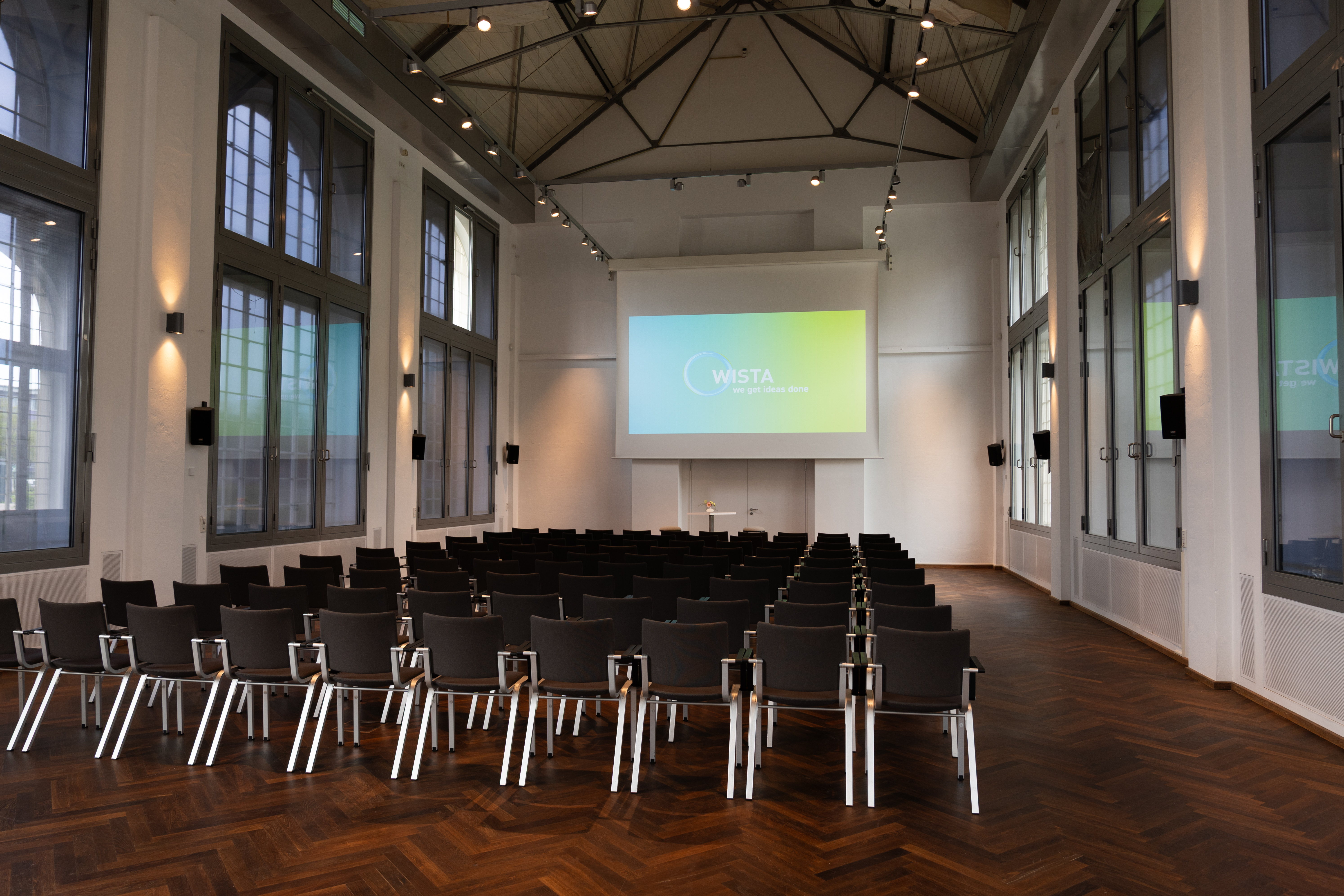 | Zuse-Saal (Souterrain) | 360°-Tour - | Raumfläche 310 m² | Raumhöhe 3.00 m | Max. Bankettbestuhlung 0 | Max. parlamentarische Bestuhlung 0 | Max. Sitzplatzkapazität 350 | Max. Sitzplätze in Reihe 0 | Max. Stehplätze 0 | Max. U-förmige Sitzanordnung 0 |