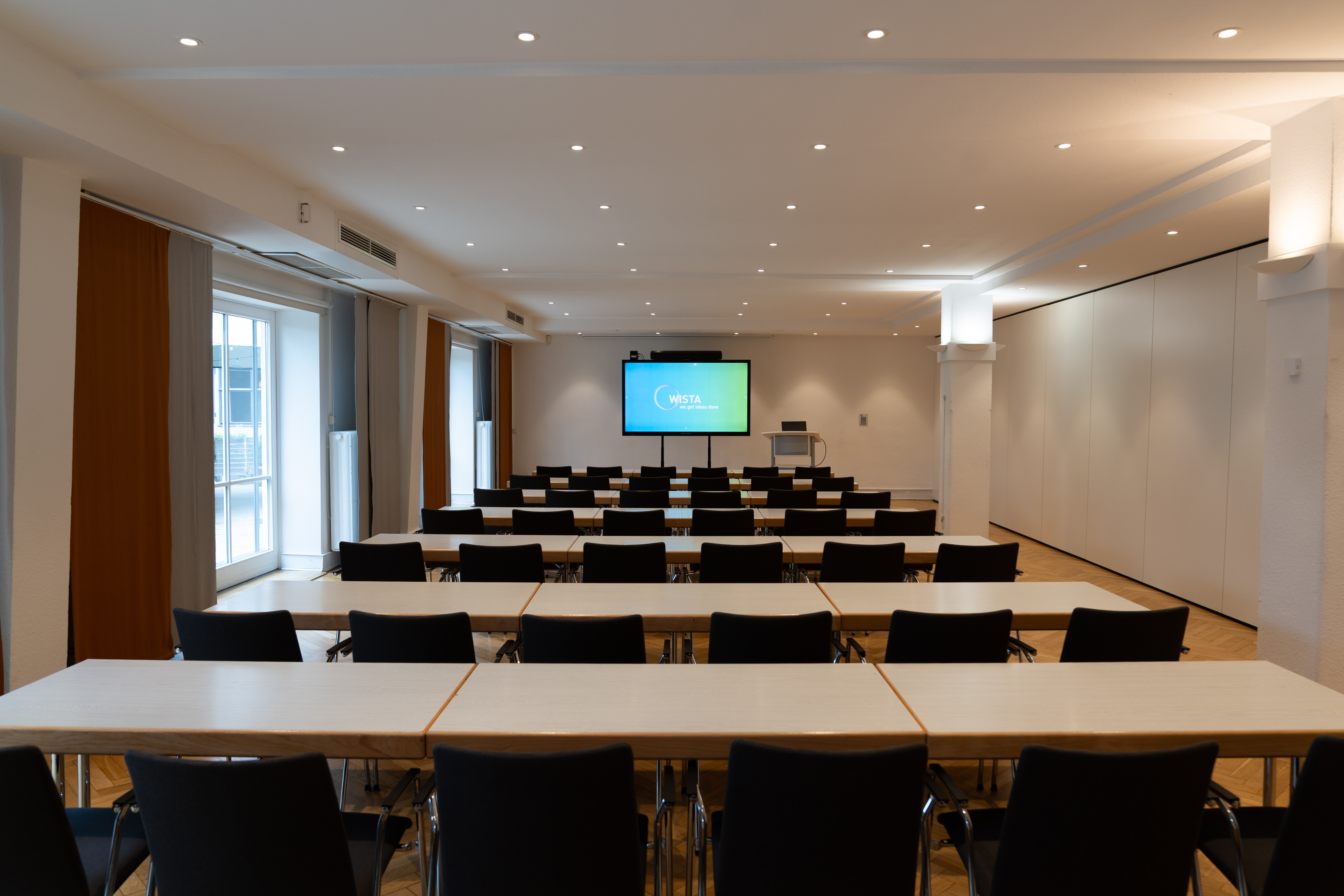 | Pasteur-Kabinett // Curie-Kabinett | 360°-Tour - | Raumfläche 70 m² | Raumhöhe 3.00 m | Max. Bankettbestuhlung 0 | Max. parlamentarische Bestuhlung 30 | Max. Sitzplatzkapazität 70 | Max. Sitzplätze in Reihe 50 | Max. Stehplätze 0 | Max. U-förmige Sitzanordnung 0 |