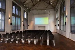 | Bunsen-Saal | 360°-Tour - | Raumfläche 414 m² | Raumhöhe 6.00 m | Max. Bankettbestuhlung 200 | Max. parlamentarische Bestuhlung 250 | Max. Sitzplatzkapazität 600 | Max. Sitzplätze in Reihe 450 | Max. Stehplätze 0 | Max. U-förmige Sitzanordnung 0 |